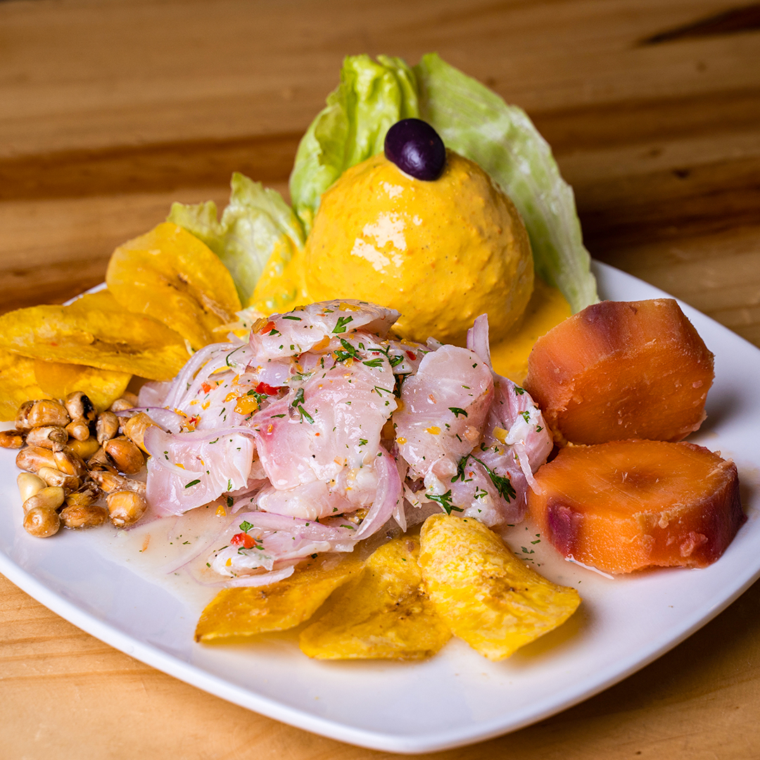 Ceviche clásico con chifles y zarandaja