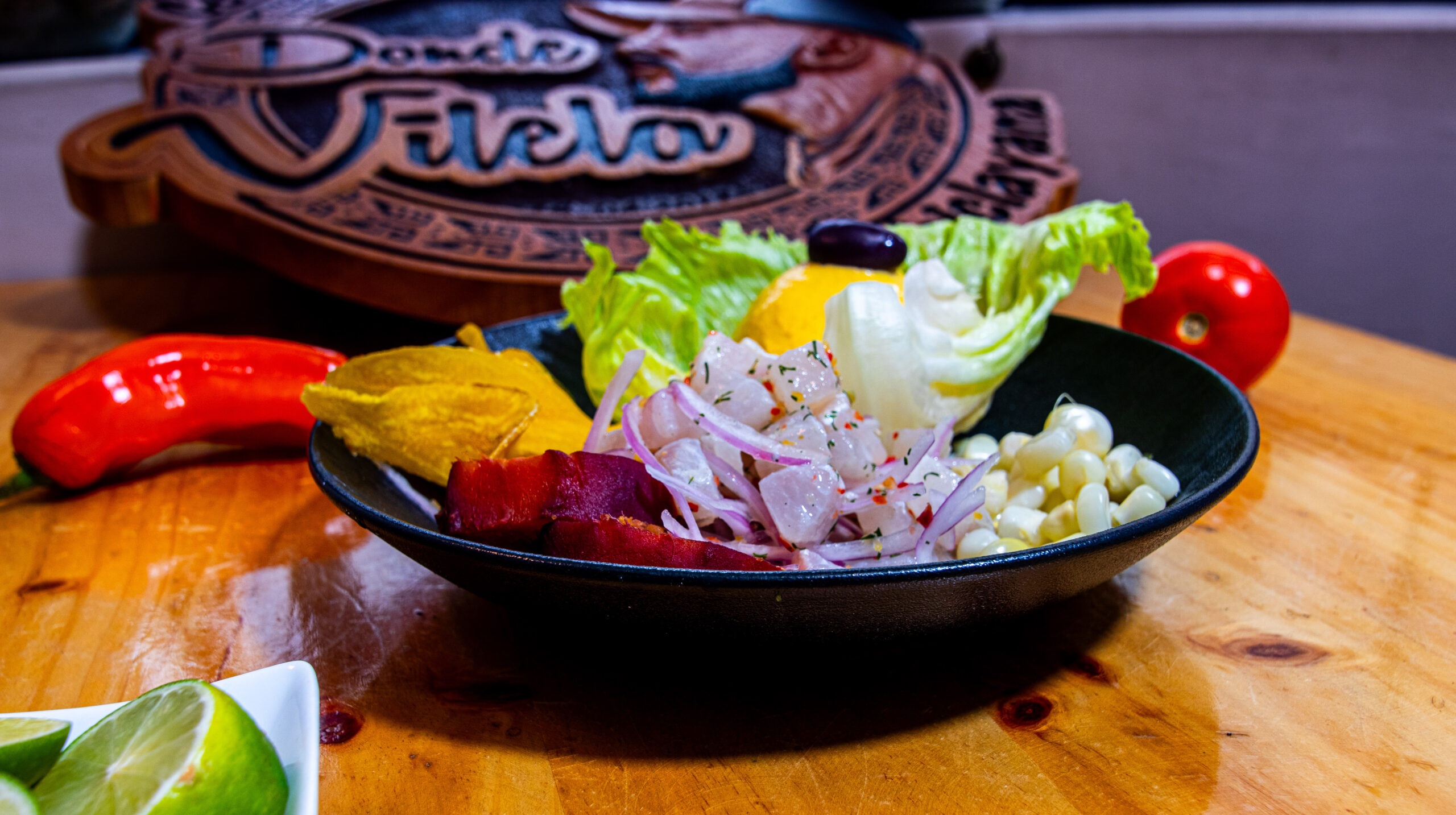 Ceviche con chicharrón de pescado